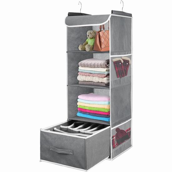 Amazon网店销售,原价:32.62加元,现价:10.35加元,无需折扣码,结账自动降为8.8加元,满35加元包邮,点击进入订购页面。 这款悬挂式收纳挂袋采用优质无纺布和轻便耐用的PP板,4层设计,配有1个布艺抽屉,侧面设有网袋,适用于存放内衣、袜子、毛巾和配饰等,外形尺寸为29D x 30.5W x 85H 厘米。