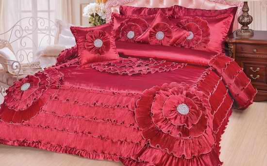 Amazon网店销售,原价:272加元,现价:77.68加元包邮。点击进入订购页面。 美观大方,褶边及花朵装饰,被子贴身面采用100%纯棉,其余部分和被子填充物为涤纶材质。内含1被子,2枕套,2靠枕套。