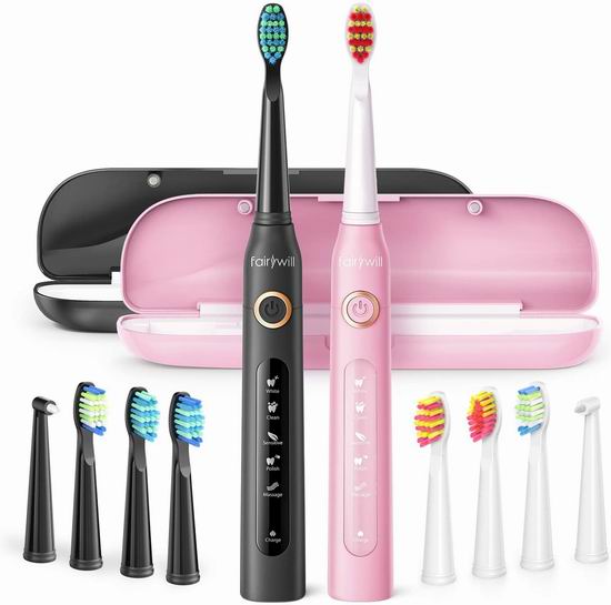 优惠Fairywill 声波震动电动牙刷2件套 58.59加元包邮!2款可选!