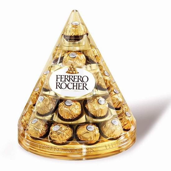 Amazon网店销售,原价:16.99加元,现价:10.87加元,满35加元包邮。点击进入订购页面。 此款费列罗外层为香浓巧克力,内有松脆威化及香滑榛果可可酱和原粒榛果,带来多种口感的享受。每颗费列罗选用金箔纸独立包装,陈放在透明礼盒内,意念新颖独特、典雅华贵!