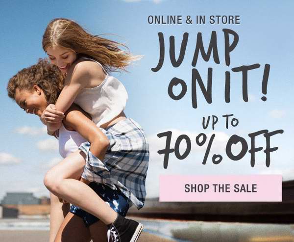 Garage网店销售,特卖区最低3起折特卖!,新用户点击网页右下角Email Sign UP登记email送新用户额外8.5折优惠码,满50元包邮,点击进入订购页面。