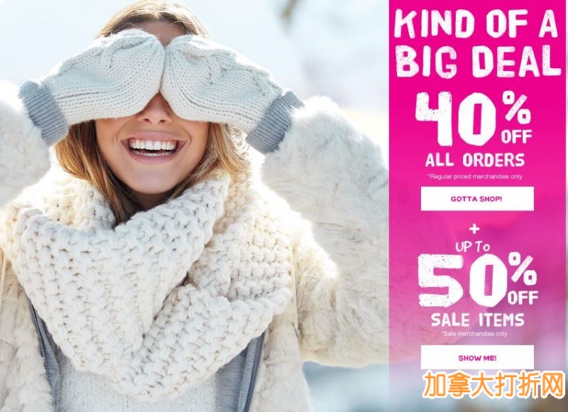 Garage网购星期一继续,全场正价商品6折特卖,特卖区5折起,新用户额外8.5折!满75元再送25元CASH CARD!全场包邮!