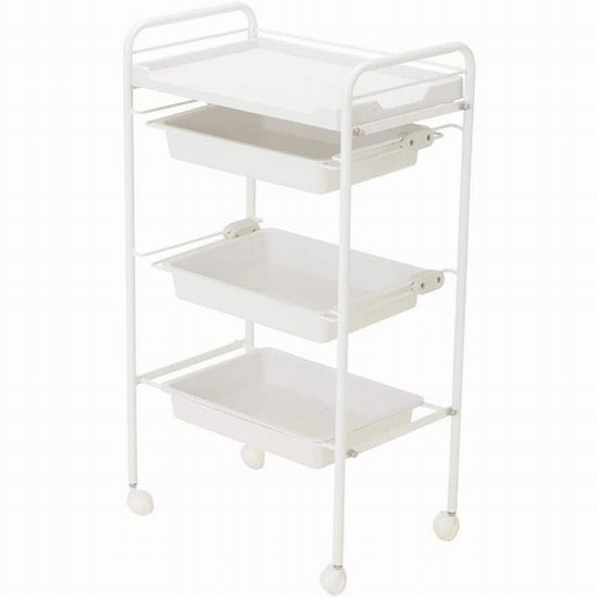 Amazon网店销售,原价:119.99加元,现价:6.99加元,满35加元包邮。点击进入订购页面。 此款收纳架采用白色涂层,设计紧凑,外形时尚,配有可锁定万向轮,带3个托盘,可用于收纳厨房用品、洗浴用品、文件、工具、玩具及杂物等。外形尺寸为86 x 48.5 x 30厘米。