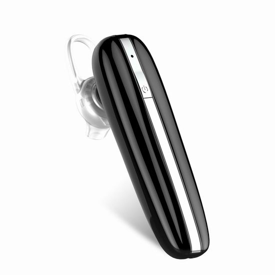 Amazon网店销售,原价:39.99加元,现价:9.99加元,全站满35加元包邮。点击进入订购页面。 采用蓝牙V4.1技术,可同时连接两部手机,单耳实现高品质音质,内置麦克风,可免提接听电话,支持语音接听电话,充电2小时,可持续收听音乐或拨打电话13小时。