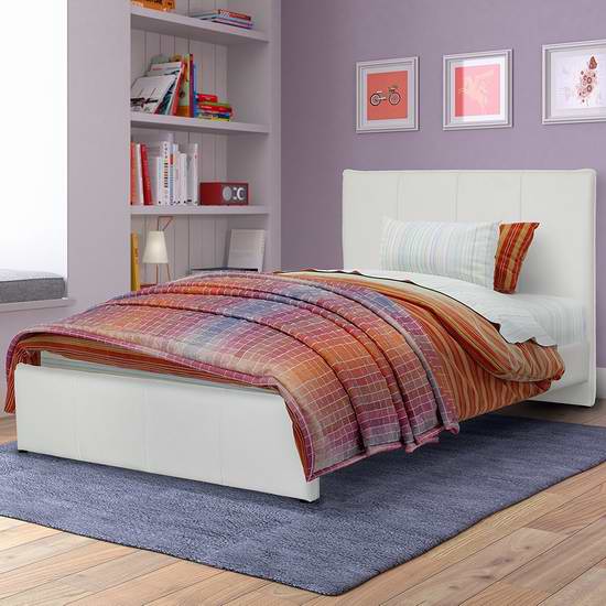历史新低价上再打7.5折!CorLiving BFF-110-S Fairfield 白色复合皮革 Twin 床架+床头板套装3.1折 206.24元限时特卖并包邮!