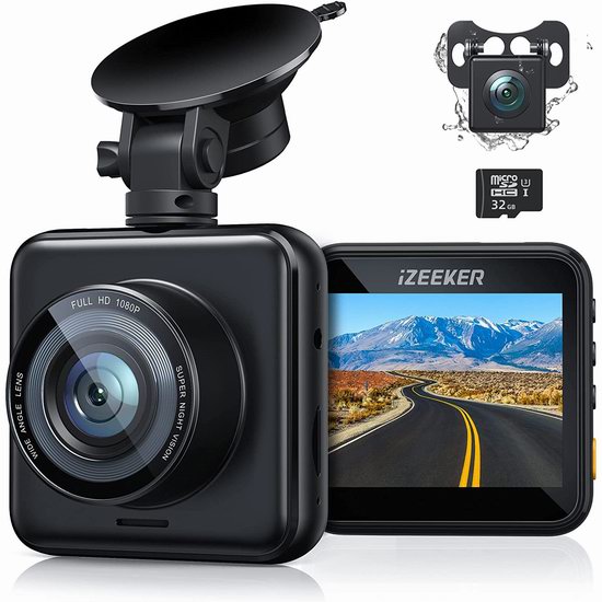 优惠iZEEKER 1080P+720P 前后双摄像头 辅助倒车 行车记录仪6.1折 54.99加元包邮!送32GB储存卡!会员专享!