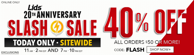 优惠Lids今日11am-14pm、19pm-22pm限时活动,网购满50元额外6折
