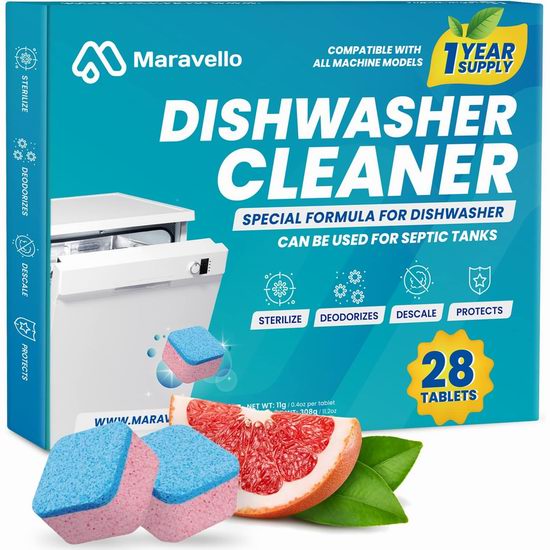 Maravello 除垢去味 洗碗机清洁剂(28粒装)5.3折 15.99加元!