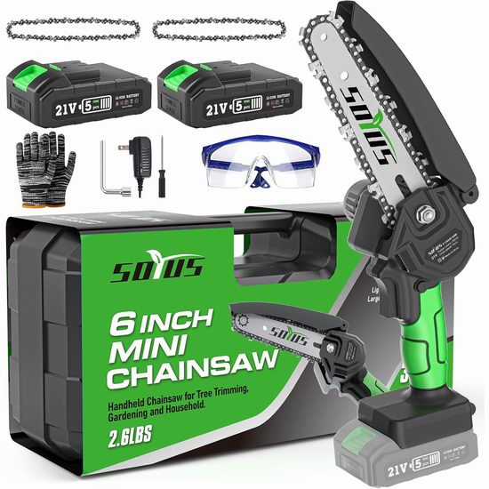 历史最低价!SOYUS 6英寸 双锯链+双锂电 修枝利器 迷你无绳链锯5.6折 49.99加元包邮!