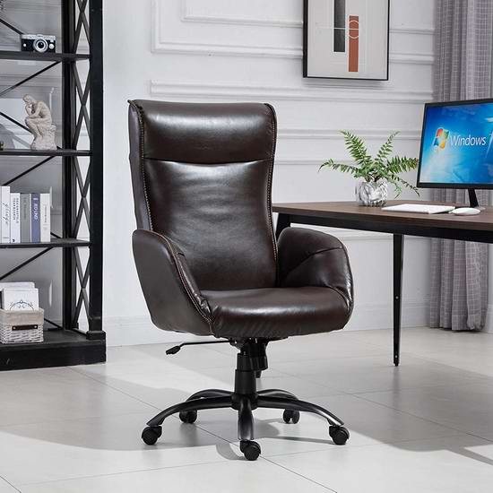 Amazon网店销售,原价:259.99加元,在结账页面使用折扣码:VSNLF7PA 降为129.99加元包邮,点击进入订购页面。 此款办公椅外观低调奢华,符合人体工学设计,采用柔软PU皮革包裹,海绵填充,为腰背肩颈头等身体各部位提供最舒适的支撑,可360度旋转,高度和倾斜度可调,最大承重396磅,尺寸为28.25"W x 32.75"D x 45-48"H。