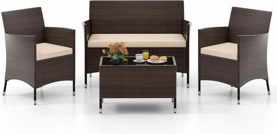 历史新低!Tangkula 庭院软垫藤条椅+茶几4件套6.2折 162加元包邮!