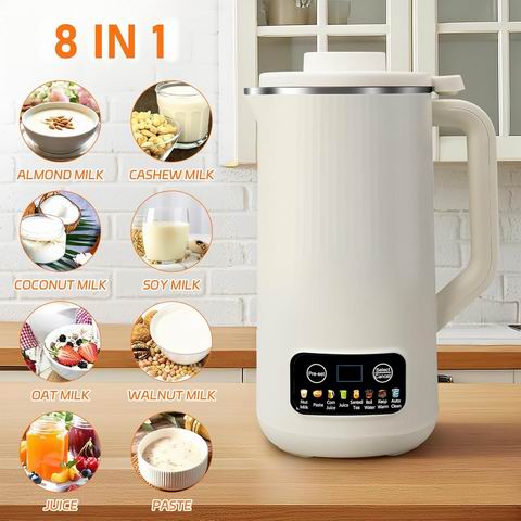 这款八合一坚果奶机集坚果奶、豆浆、燕麦奶等八种功能于一体,采用强劲马达与十叶刀头实现免浸泡快速制作(约27分钟/杯),配备12小时预约与自清洁系统,600毫升容量适合制作各类纯素植物奶,是追求健康饮食家庭的理想厨房电器。