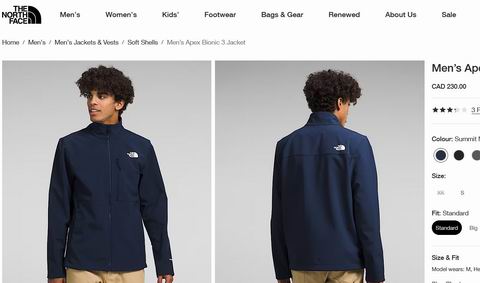 The North Face 北面Apex Bionic 3 男式软壳夹克 96.75加元(官网原价 230加元,未打折,S码)