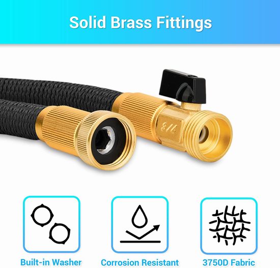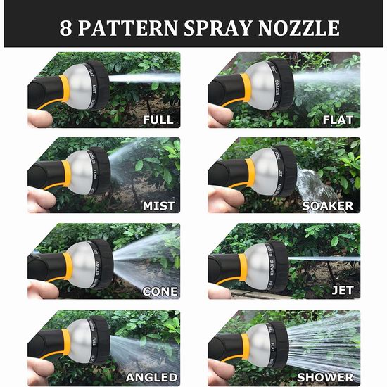 采用升级的抗氧化技术,即使在长时间使用后也能有效防止内胎硬化,保持其柔韧性并使内胎功能更坚固。实心黄铜硬件,经久耐用抗腐蚀,永远不扭曲缠绕,易于使用和储藏。在60 PSI水压下,水管可迅速膨胀3倍长度,在水关闭后几秒钟内又恢复到原始长度。附送喷头有8种模式可选。由于管子具有伸缩性,请每次使用后先关闭铜制连接头的开关,再打开喷头放掉管中余水,让水管保持收缩状态。