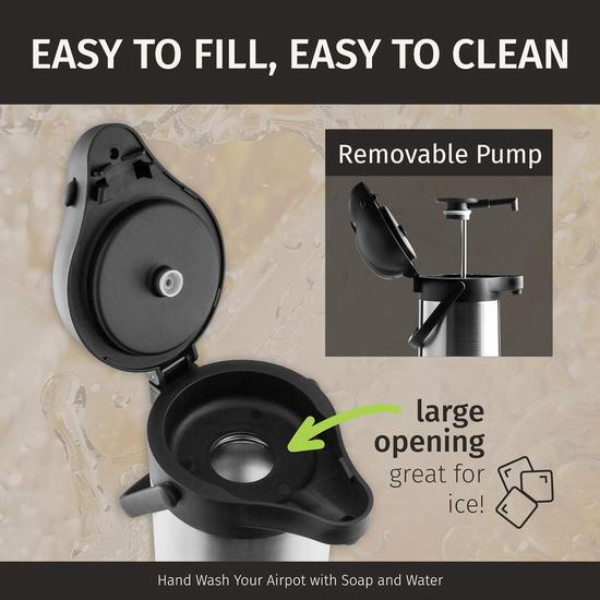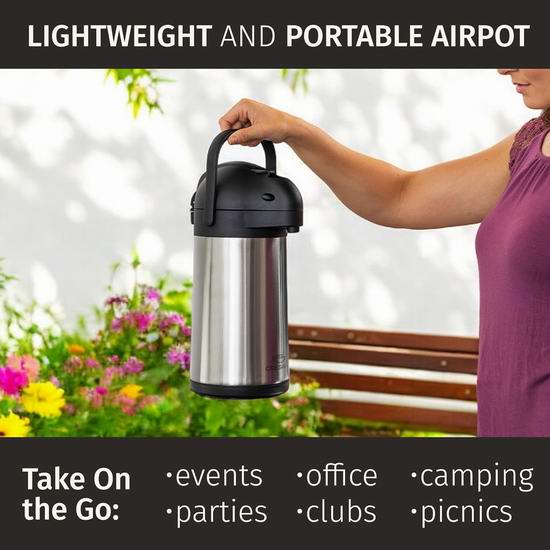 采用18/8食品级不锈钢材质,不含 BPA和其他有毒物质,采用双层真空绝热保温技术,可保温超过12小时,采用大口径设计,清洁和加水都非常方便。可用于开水、茶水、咖啡或饮料的保温或保冷,容量高达2.2升。