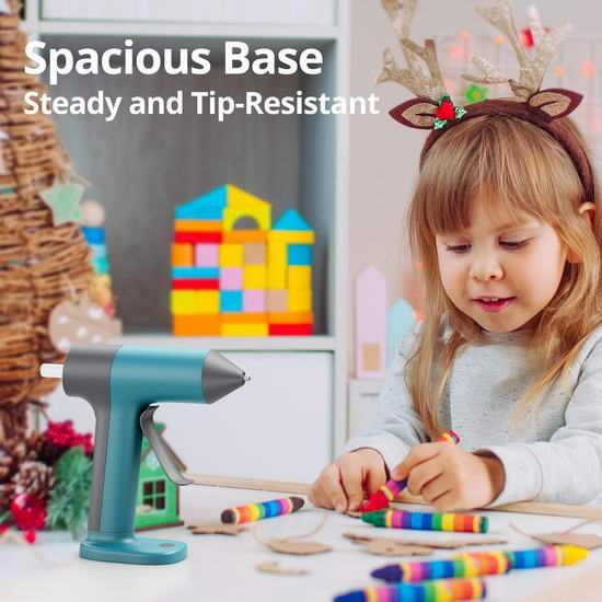 只需30秒即可快速预热,让您即刻开始创作。内置可充电2Ah电池,可提供长达60分钟的使用时间。支持智能5分钟自动断电,稳定的防倾倒底座可使胶枪保持直立,减少飞溅。套装包含20支迷你热熔胶棒(7mm × 140mm),粘合力强,适用于纸张、织物、塑料和木材。1.7mm防漏喷嘴确保精准控制,不滴漏,轻松勾勒出干净利落的胶线。