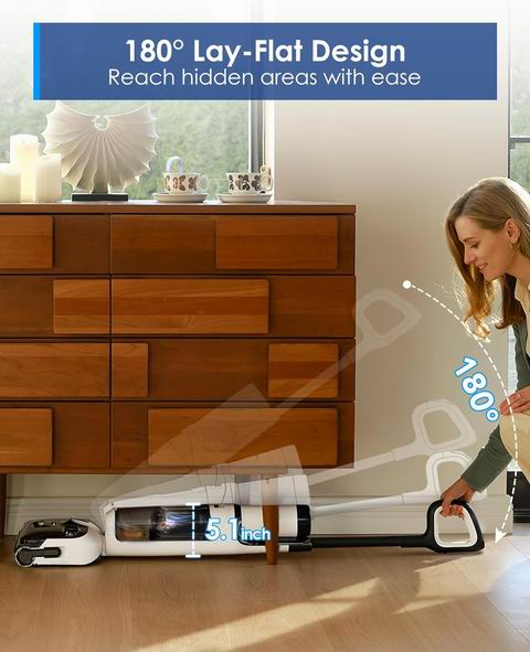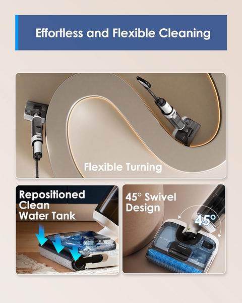 Tineco Floor ONE S6 Stretch Lite 是一款超灵活的干湿两用吸尘器,可 180° 平放并通过 HyperStretch 技术压缩至仅 13 cm,轻松清洁床底、家具下方等低矮空间;搭载三腔污水分离系统,即使平放也能保持强劲吸力。一键自清洁可深度清洗滚刷和管道,并通过离心干燥快速去湿;迷你辅助轮与 45° 灵活转向让操作更顺滑。清水箱上置设计提升机身平衡度,搭配 iLoop 智能系统动态调节吸力、水量与电量,提供最长 40 分钟续航,轻松完成全屋清洁。