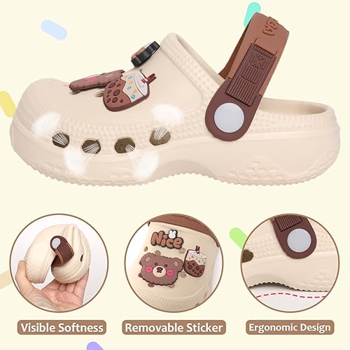 这款儿童鞋采用优质材料,柔软轻便,经久耐用,无异味且。鞋面和侧面均设有排水孔,有助于排出水或沙子。EVA防滑鞋底在行走和运动时提供极佳的抓地力,透气设计还能防止出汗,给孩子带来超酷的穿着感受。提供多种可爱图案鞋花,可随意更换。
