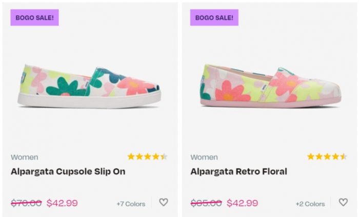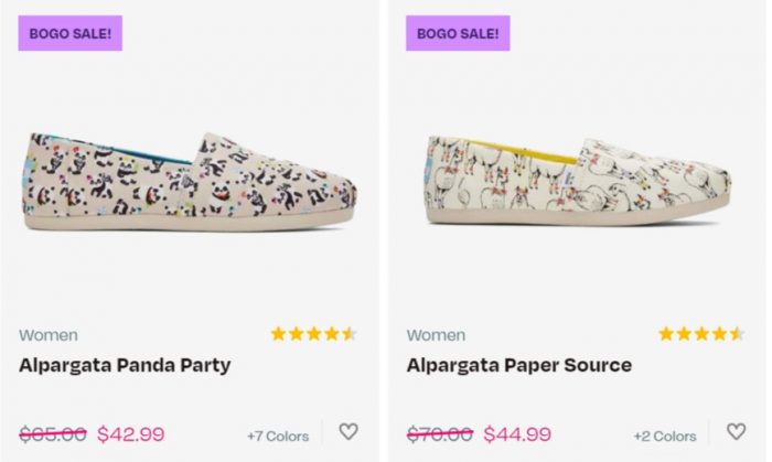 Toms网店销售,精选成人儿童帆布鞋、凉鞋、短靴5.6折起+买1双第2双享受额外5折,使用折扣码:BOGO ,满70加元包邮。点击进入订购页面。