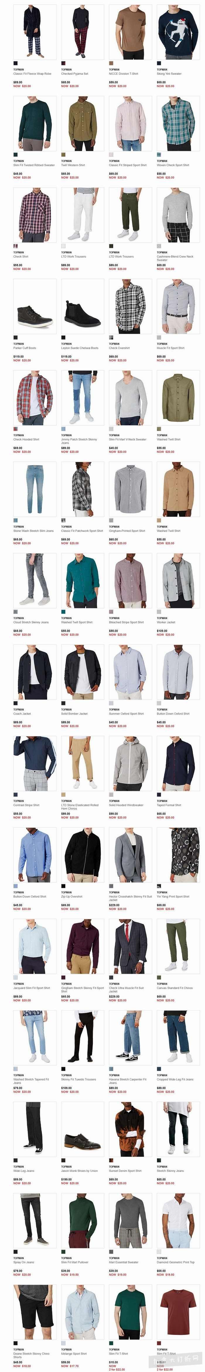 白菜价!精选 133款TOPMAN男士毛衣、衬衣、牛仔裤 20加元以内清仓特卖!