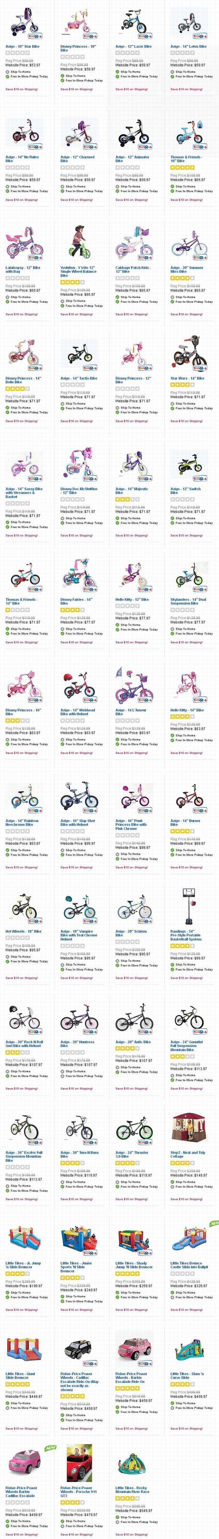 Toys R Us网店销售,Deals区精选42款儿童、青少年自行车全部6折限时特卖,售价低至53.97元,另有12款室外大型充气玩具、篮球架、电动车等5.7折起特卖,运费立减10元,选择店内取货免邮,点击进入订购页面