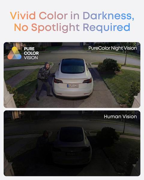 🔹星光级全彩夜视:内置聚光灯与星光传感器,低光下也能呈现彩色画面,夜视距离最远达98英尺(约30米)