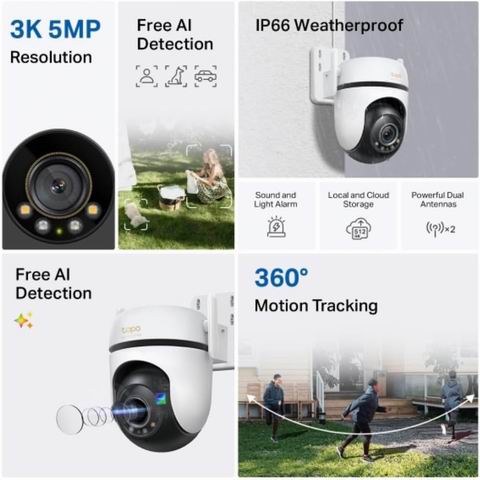 TP-Link Tapo C530WS 3K 5MP 云台室外有线安防摄像头 79.99加元(原价 99.99加元)