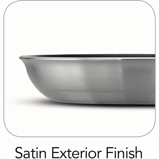 煎锅配备铸造不锈钢手柄,采用三个实心铆钉固定以提供额外支撑。手柄配有可拆卸的硅胶软握把,不仅增加舒适性,还可在高达 400°F / 204°C 的烤箱内外灵活使用,提升使用便利性。这款煎锅的不粘涂层经过强化处理,不含 PFOA,确保高性能且易于清洁,让您轻松完成从烹饪到清理的每一步。其厚铝材质和精密设计获得了 NSF 认证,符合专业厨房炊具的严格标准。