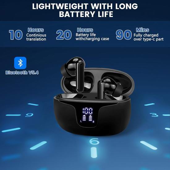 采用蓝牙5.4技术,传输效率提升90%,实现近乎无损的音频数据传输,确保音频信号的精准还原。拥有先进的降噪技术和独特的扬声器,即使在嘈杂的环境中也能实现精准的实时语音识别。采用人体触控传感器,只需轻轻一触即可灵敏操控。不仅可以用作翻译设备,还可以接听电话和听音乐。内置100mAh高品质电池,续航10小时,配合充电盒,续航可达30小时。