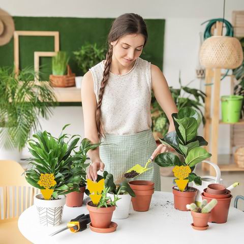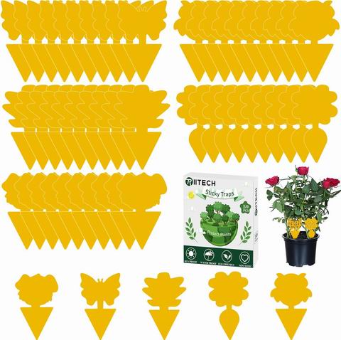 采用无毒无味配方,使用强力双面粘胶,无需化学成分即可高效捕捉果蝇、白粉虱等害虫,对人和宠物安全无害。防水防晒材质保证长期使用不干胶、不脱落。操作简便,只需撕开保护膜并插入土壤或植物旁即可使用。适用于温室、果园、花园及苗圃等场所。每包含 50 片黄色粘蝇纸,数量充足,持久耐用。