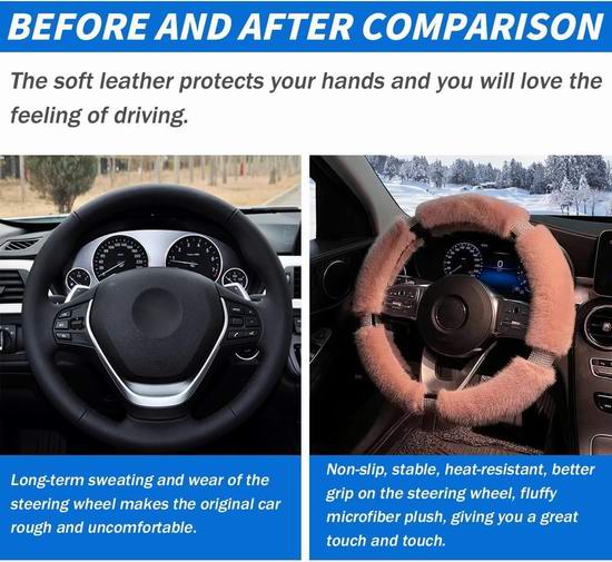 采用加厚毛绒材料制成,亲肤柔软,让您在寒冷的冬天保持舒适的温度。精致璀璨的优质水钻镶嵌,时尚可爱,不易脱落,是一款彰显您时尚感和个性的汽车饰品。提升您爱车内部空间的品味和档次,给您带来愉悦舒适的驾驶体验。适用于直径从14 1/2英寸到15英寸(37厘米到39厘米)的所有中型方向盘。购买前请确认兼容性。