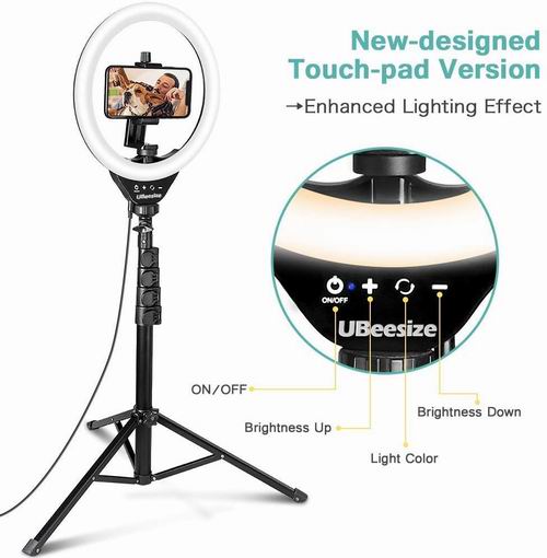 如果您打算成为专业的YouTuber,Twitch直播者,或者仅想拍摄精美的自拍照,则需要环形照明灯。您观看的所有高质量视频都可能在幕后使用了环形照明灯。这款自拍环形灯,小巧便携,但功能仍然强大,并配有许多配件。新设计的环形灯,]触摸板易于控制,有3种光色(暖色,冷白色,日光色),每种颜色10级亮度,共有33个选项。非常适合摄影,录像,视频会议。长20英寸,可轻松放入背包,并通过电话架将其高度增加到63英寸,功能强大的Bluetooth遥控器和AC / dc适配器,非常适合直播,视频录制和室内照明。