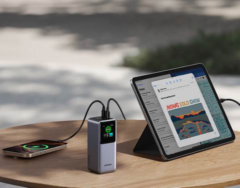 UGREEN 20000mAh移动电源支持130W MAX总输出,配备三接口(单口最高100W)与TFT智能数显屏,可实时监控电量、功率等参数;其20000mAh容量可为16英寸MacBook Pro提供43%电量(30分钟),并兼容iPhone、iPad及多数笔记本电脑快充。