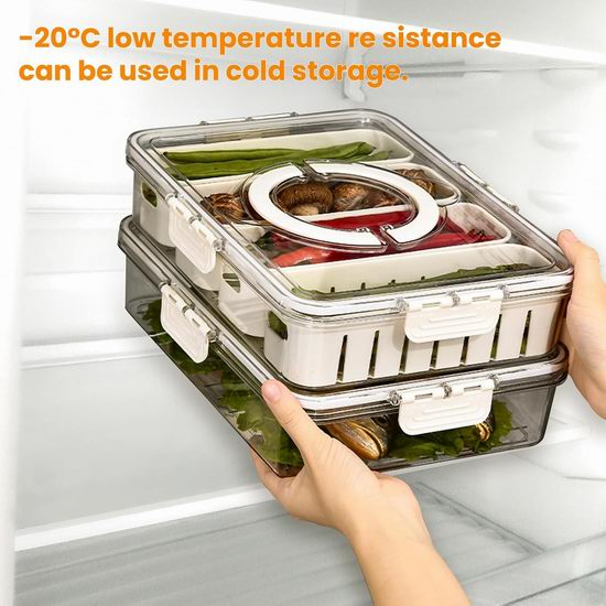 这款带盖子和手柄的分隔式收纳盒,非常适合整理水果、零食、干果和香料等。采用优质塑料制成,便捷的手柄设计让零食盒易于取用。堆叠设计,可以最大限度地利用有限空间,保持整洁有序。
