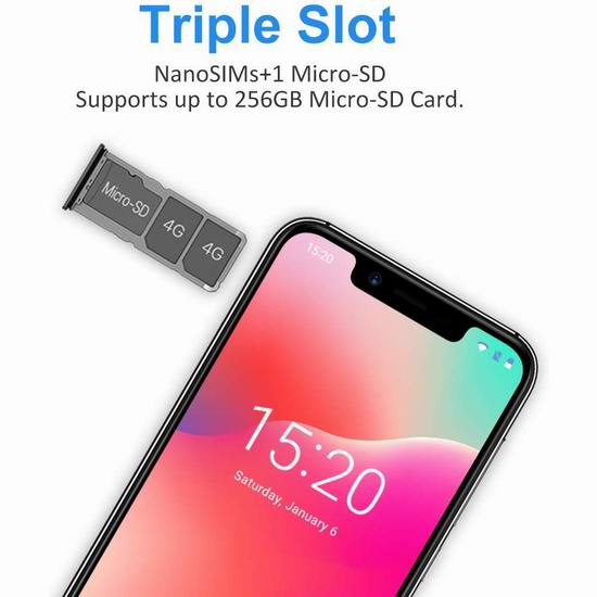 采用5.7英寸全高清屏幕,解析度1440 x 720像素,搭载MT6739 1.5GHz四核处理器,3GB内存,16GB内置存储空间,最大支持256GB microSD扩展,android 8.1操作系统,配置3300毫安电池。1200万 + 500万像素摄像头,f/2.0大光圈,拍摄图像更清晰,800万像素前置摄像头,满足自拍需求。支持2G:GSM B2 / 3/5/8 3G:WCDMA B1 / 2/4/5/6/8/19 4G:TDD-LTE B38 / 40/41 4G:FDD-LTE B1 / 2/3/4/5/7/8/12/13/17/18/19/20/26/28,兼容全球GSM网络。
