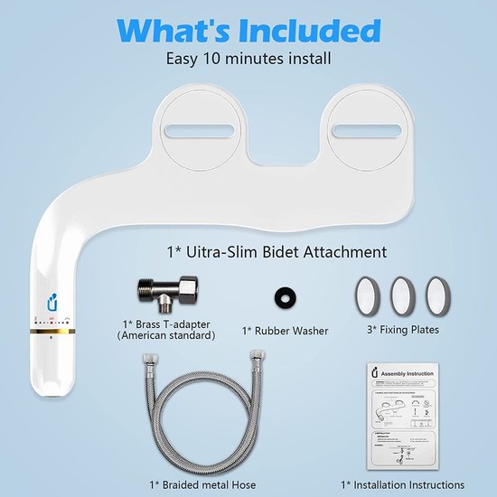 集清水冲洗、清洁通便、疾病防治等功能于一体,是现代化的智能卫生洁具代表,配备双喷嘴,增加下体清洗功能,特别适合女性月经期间使用。超薄设计,厚度仅0.24英寸。无需通电,只要简单的工具便可DIY将其接入马桶圈下,实现卫生冲洗,可与任何标准的2卡槽式马桶兼容。