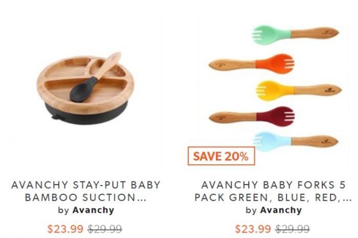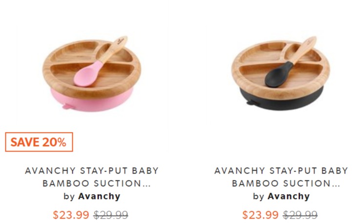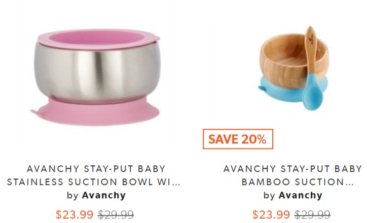 Avanchy是由天然碳化竹子及不锈钢与食用级硅胶组成,吸盘稳、抗摔不怕宝宝啃咬;全部材料通过SGS全球领先的检验、鉴定及测试;安全无异味,不含双酚A、不含塑料、不含PVC、不含BPA。颜色鲜艳造型圆萌~快抢啊!!颜值好高啊~想买!质感评分,宝宝吃饭神器!AVANCHY 宝宝吸盘碗、勺 8折优惠!