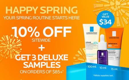 La Roche-Posay网店销售,3月21日前,使用折扣码:SPRING 享9折优惠,
