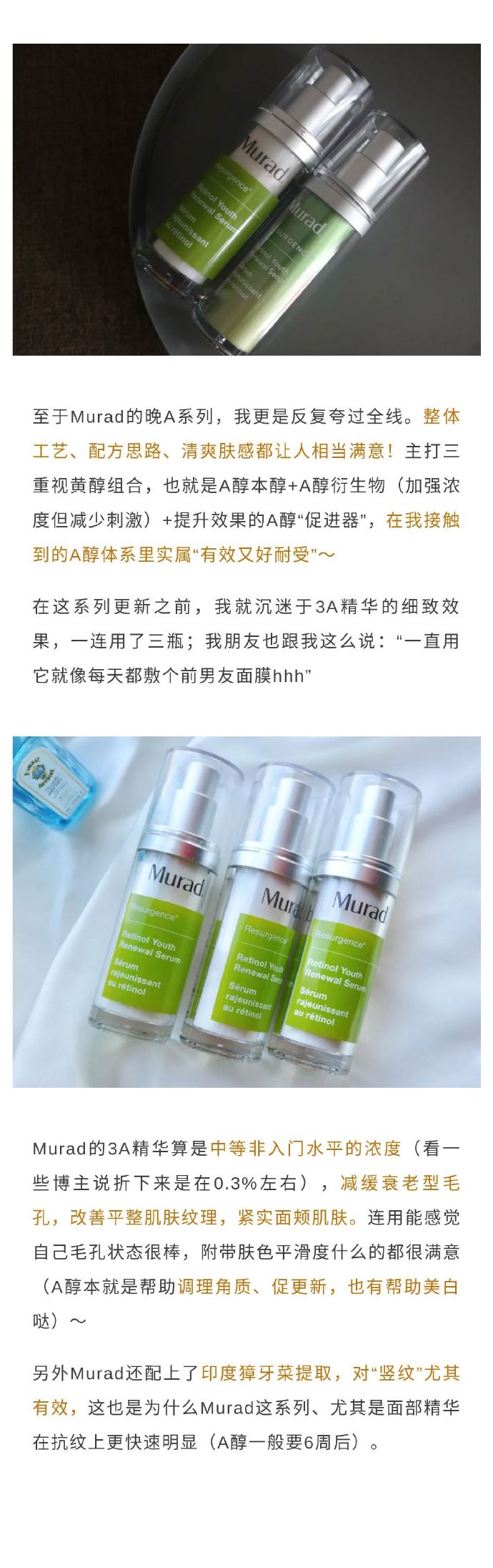 Murad视黄醇A醇面部精华 92加元(115加元):独家“3A”整体性配方技术,提升250%修护力,同时保留柔和肤感,紧致提拉,抗氧焕亮!