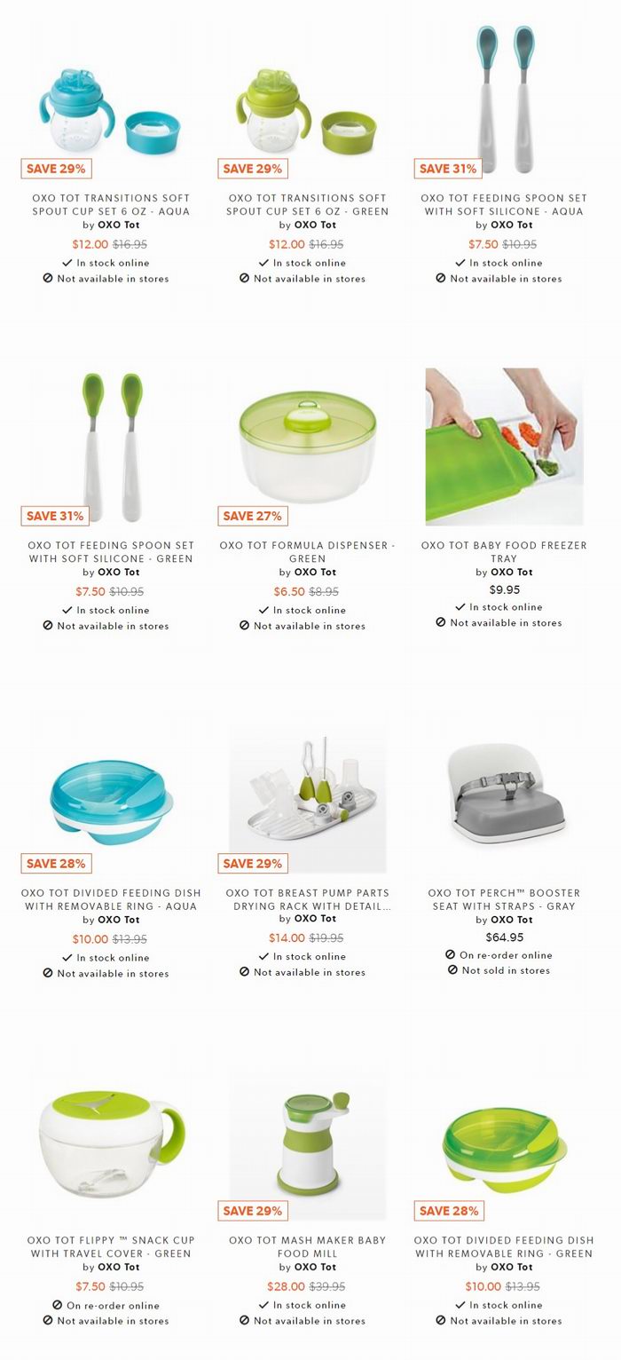 Indigo Chapters网店销售,美国OXO Tot宝宝用品 6.9折 6.5加元起特卖,包邮,点击进入订购页面。