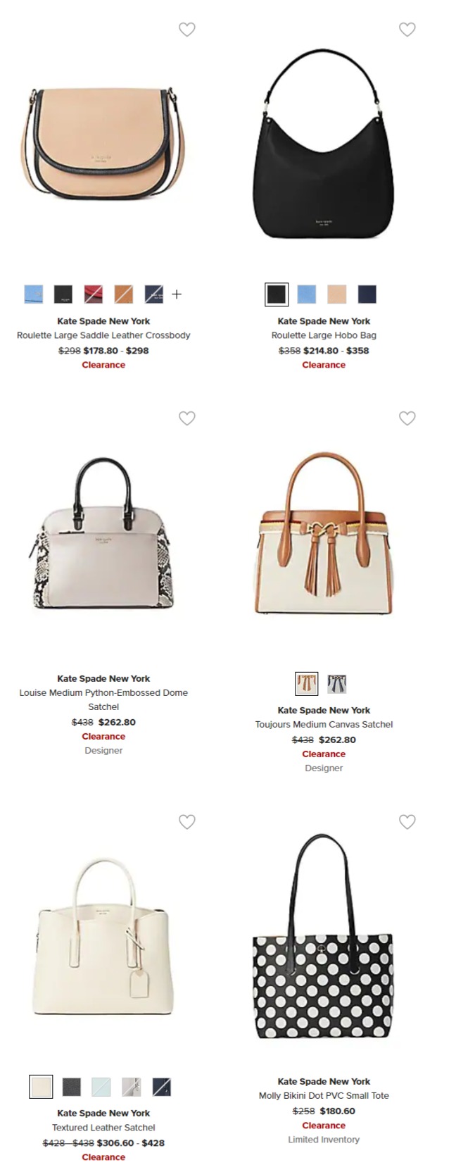 The Bay网店销售,精选 Kate Spade时尚美包 6折起特卖!满99加元包邮。点击进入订购页面。