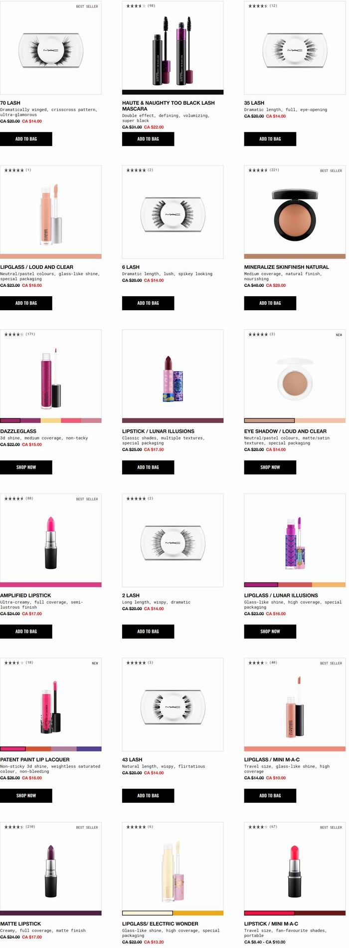 MAC网店销售, 折扣区口红、化妆品、化妆刷 6折 ,仅限注册会员,使用折扣码:WELCOME15 享受额外8.5折( 点击注册 ,然后再在账户里注册一下M.A.C lover 就可买了);购买2颗单色眼影送价值30加元晕染刷,无需折扣码;满65加元自选眼线笔(最高价值28加元);无需折扣码。结账自选1小样,包邮。点击进入订购页面