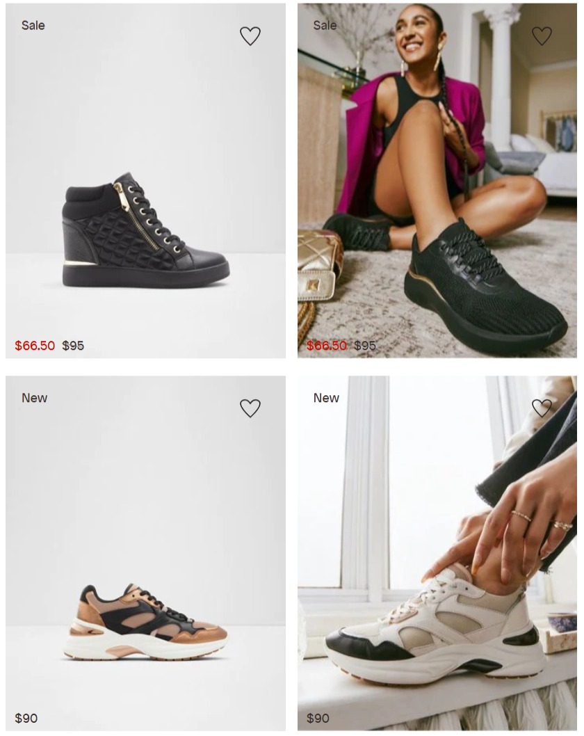 Aldo网店销售,精选男女美鞋、美包5折起+买2享受额外9折,无需折扣码,加入购物车自动显示,满50加元包邮。点击进入订购页面。