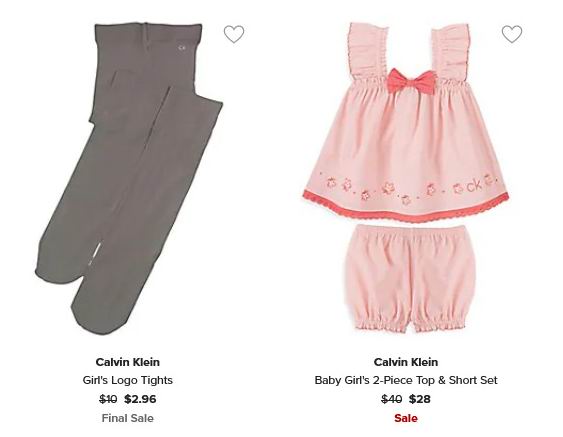 Calvin Klein 儿童春夏服饰 5折起+满立减10加元,上衣+短裤套装28加元