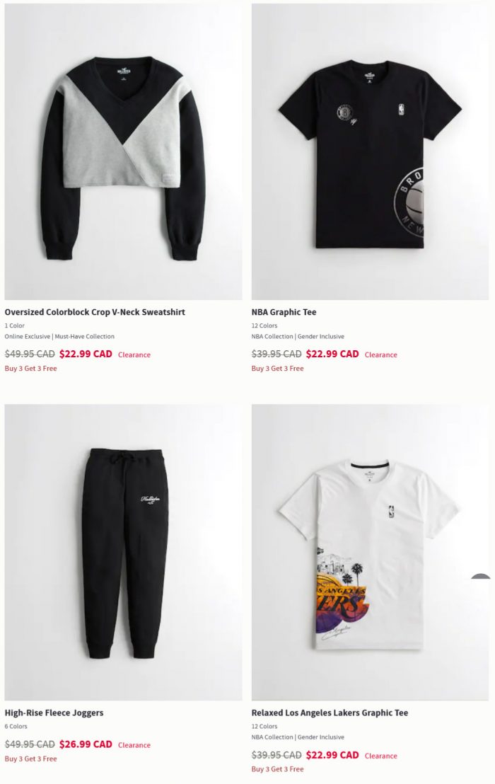 Hollister网店销售,折扣区2.4折起+买3送3,满50加元包邮。点击进入订购页面。