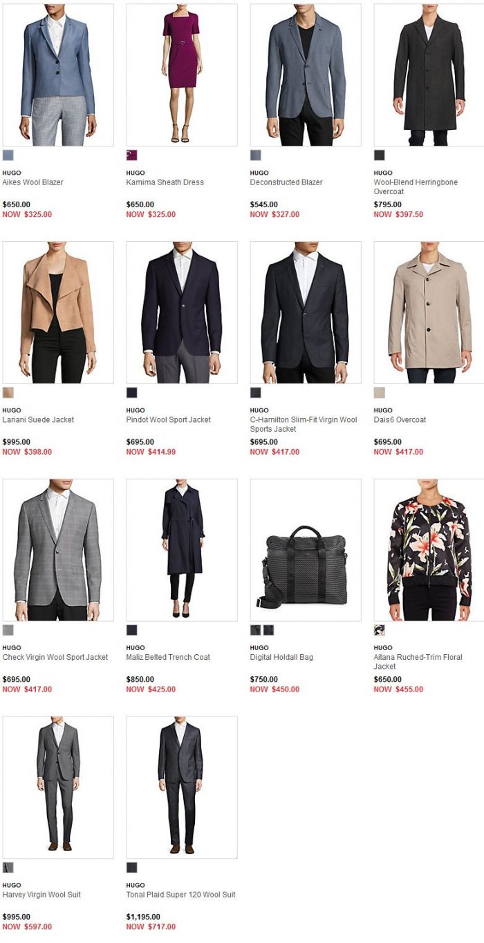 The Bay网店销售,精选 98款 HUGO 时尚男女服饰,美包 5折起特卖,售价低至 47.5加元!满99加元包邮。点击进入订购页面。
