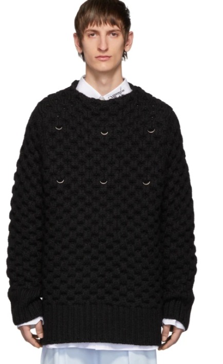 Raf Simons 男士80%初剪羊毛+20%马海毛混纺镂空蜂蜜针针织毛衣 616加元(2280加元,s/m码)