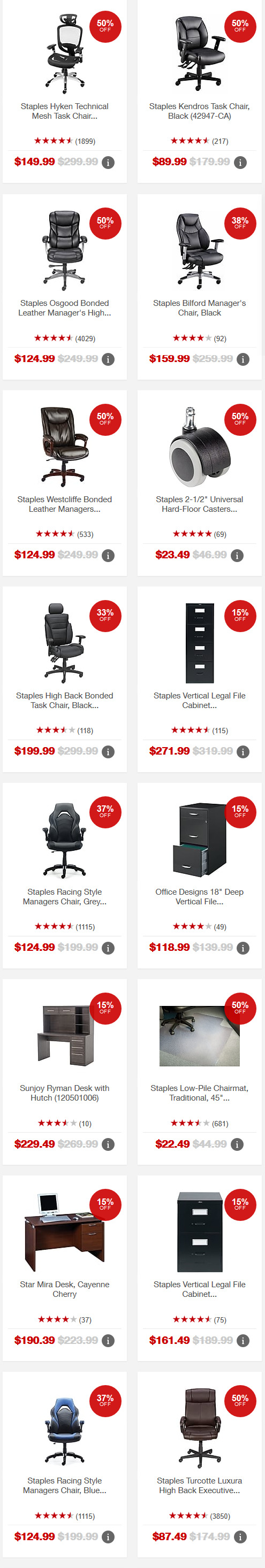 Staples网店销售,精选电脑桌、办公椅 5折起+满200加元立减20加元(点击此处领取折扣券)!包邮。点击进入订购页面。