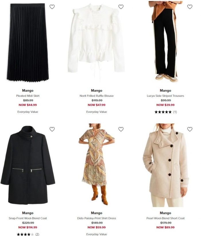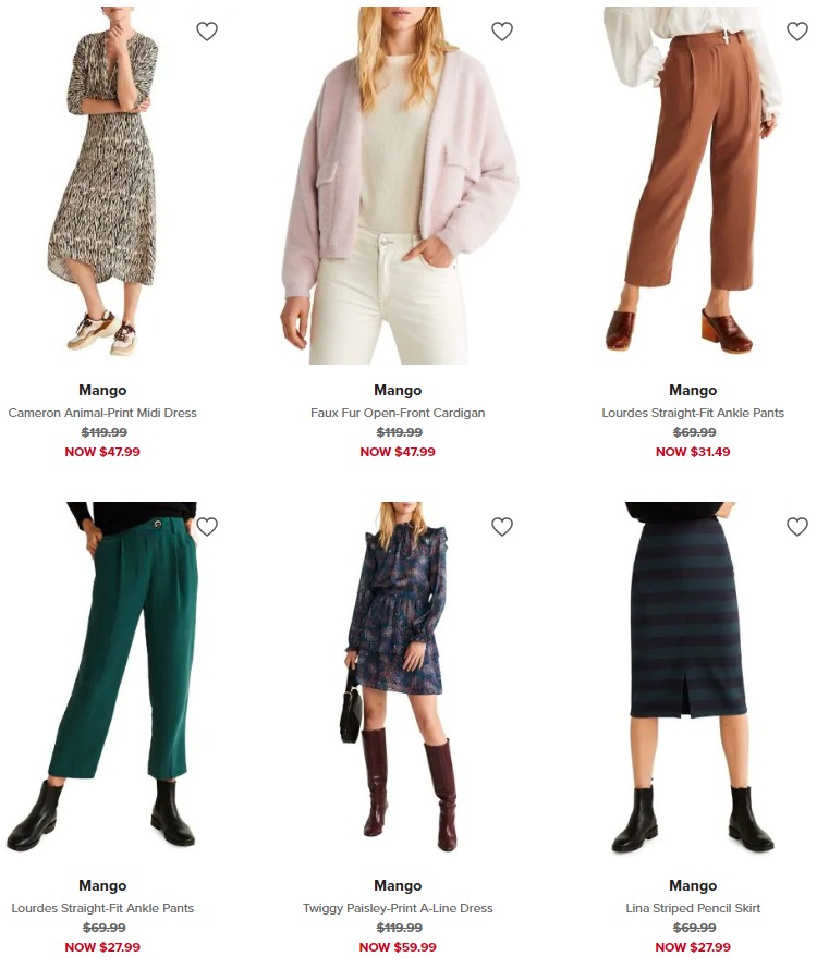 精选Mango女生时尚气质服饰 3折起+额外8.5折,折后低至 9.68加元