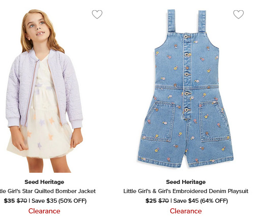 The Bay网店销售,Seed Heritage 好看不贵儿童澳洲服饰2.9折起,满69加元包邮。点击进入订购页面。